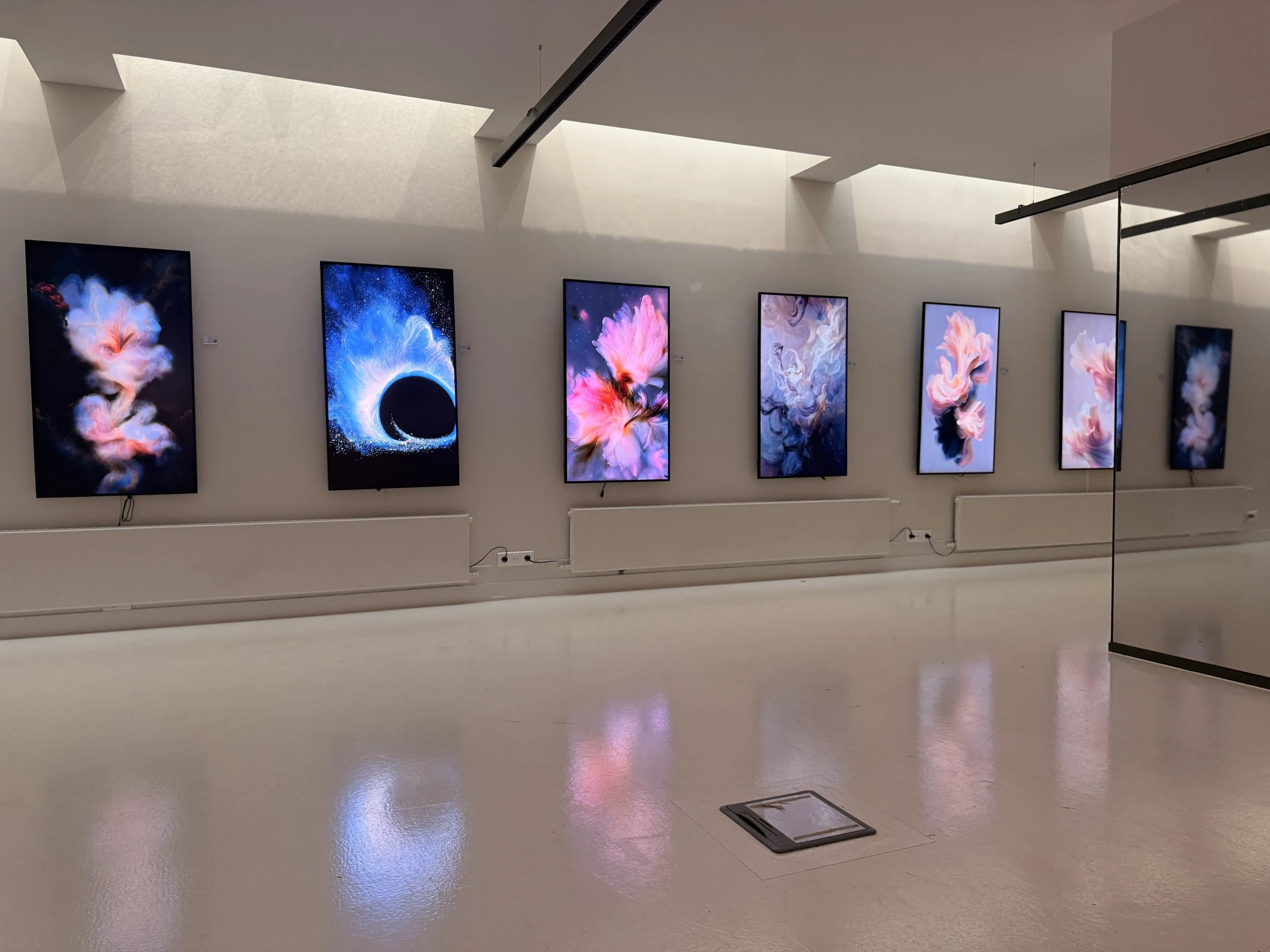 As one of five featured artists in My Body Language, a group exhibition curated by Olena Yara and held at Artverse Gallery in Paris from March 20 to April 3, 2026. Seven original works were presented, drawing from a long-standing meditation and yoga practice — blending traditional art, animation, and generative AI to create immersive visual environments that invite stillness, inner awareness, and a sense of expanded perception.